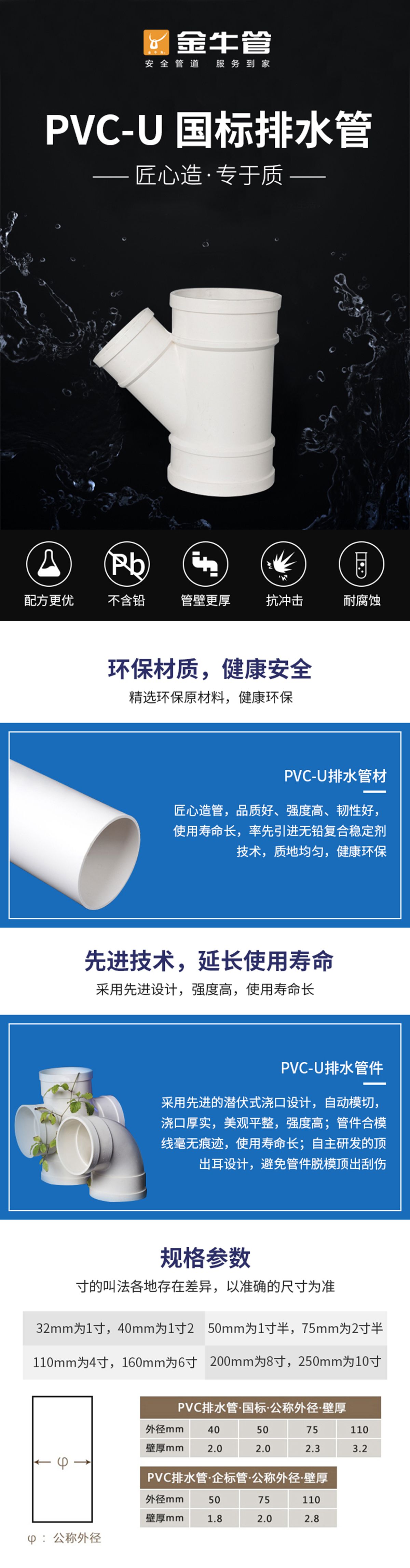 金牛PVC-U排水管件 45异径斜三通110*75